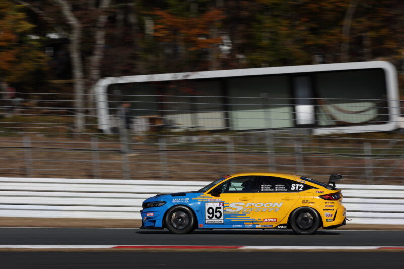 11月15日(土)~16日(日)、静岡県の富士スピードウエイ(4.563km)において開催されたENEOSスーパー耐久シリーズ2025 Empowered by BRIDGESTONE第7戦S耐FINAL大感謝祭において、95号車「SPOONリジカラCIVIC」(ドライバー:山田英二 / 小出峻 / 西村和真)がST-2クラス決勝で2位表彰台を獲得しました。第6戦に続き、2戦連続での2位表彰台となります。