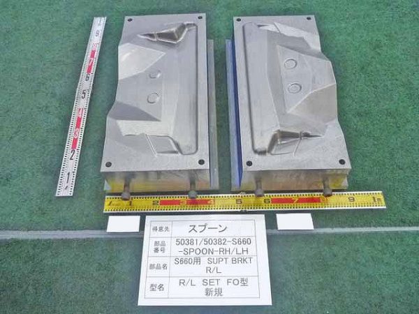 プレートは3次元CADにより専用プレス型を設計し、1.6mm厚のJSC780超ハイテン材を800t油圧プレス成形をしました。