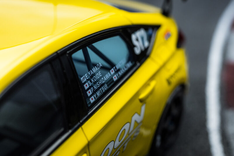 本モデルは、2024年にTEAM SPOONがスーパー耐久シリーズへ参戦し、国内レースへ7年ぶりに復帰した記念すべき車両を再現したものです。シーズンを通じて走り抜いたマシンの力強さ、そしてサーキットでの息遣いまで感じられるような迫力を、細部までこだわった造形で表現しています。モデル化にあたっては、実車の3Dスキャンデータをもとに、エアロデバイスはもちろん、内装の雰囲気に至るまで丁寧に再現されています。2024年シーズン最終戦では、周囲のアクシデントなどもある中で、TEAM SPOONは復帰初優勝を飾りました。本商品は、その印象深いシーズンを象徴する1台です。