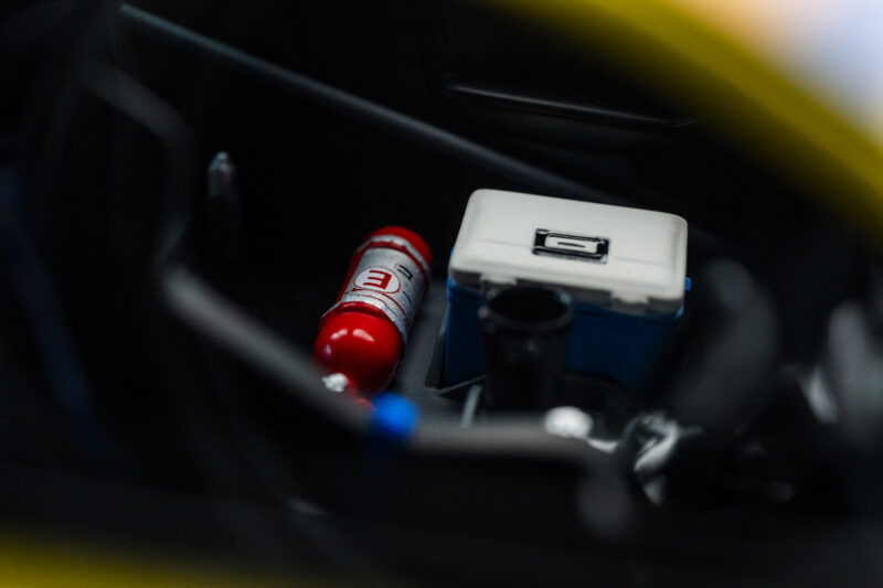 This model captures the presence and intensity of the car that competed throughout the 2024 Super Taikyu season, expressing the strength of the machine and the atmosphere of the circuit through highly detailed craftsmanship.Based on a 3D scan of the actual race car, the model faithfully reproduces not only the aerodynamic devices but also the character of the interior with great attention to detail.