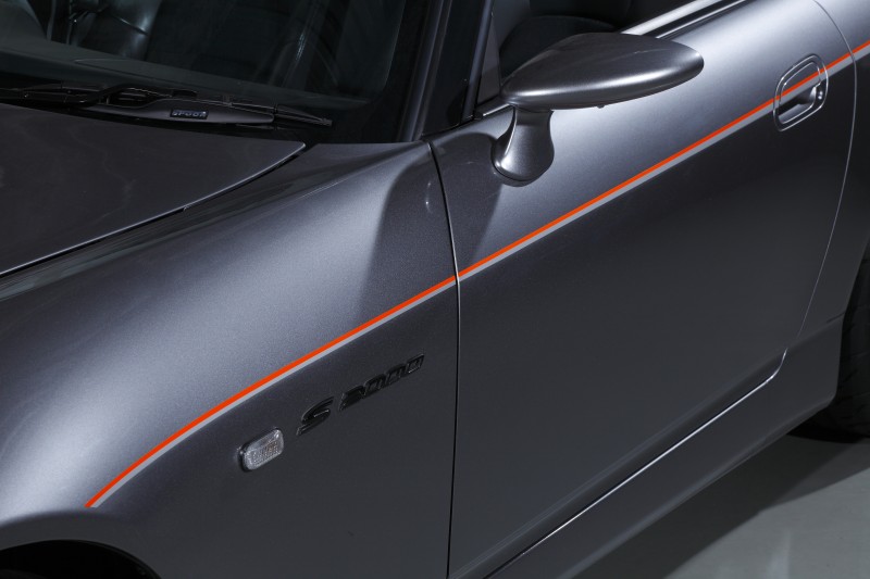 フロントからリアへ一直線に末広がりしていくシルバーのストライプは、80~90年代後半のSPOONレースカーにデザインされていたストライプをリメイクし車種別に専用設計したものです。