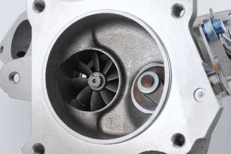 タービンホイールも翼形状、枚数を最適化し、純正47Φ→52Φに設定し、慣性モーメントを抑えつつ大容量化する事で排圧の低減とレスポンス向上に成功しました。